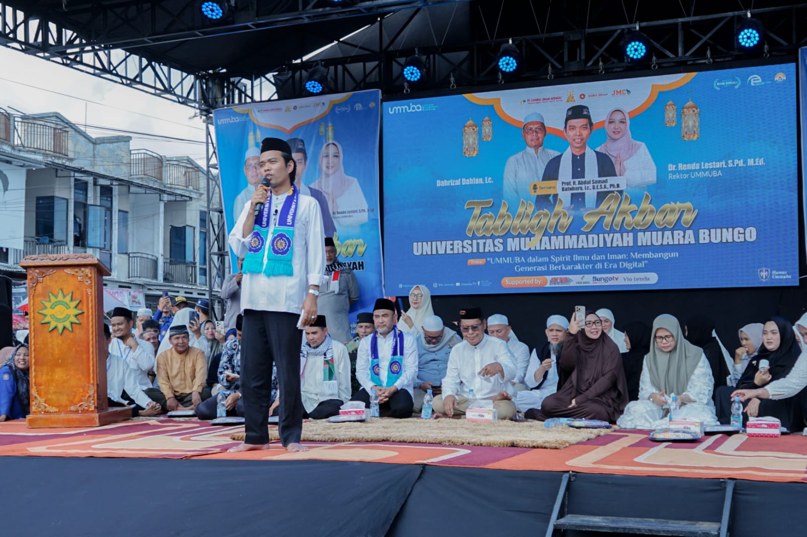 Dalam rangka memperingati Milad ke-3, Universitas Muhammadiyah Muara Bungo (UMMUBA) menyelenggarakan Tabligh Akbar yang megah dan penuh khidmat pada minggu 27 Juli kemarin. Kegiatan ini menghadirkan ulama nasional sekaligus intelektual Muslim terkemuka, Prof. Dr. H. Abdul Somad Batubara, Lc., D.E.S.A., Ph.D., yang memberikan ceramah keagamaan.